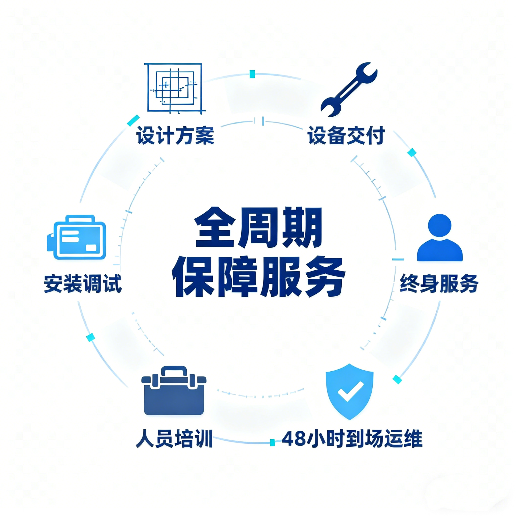 從設(shè)計方案到設(shè)備交付 全周期保障提供安裝調(diào)試、人員培訓(xùn)、48 小時到場運維等終身服務(wù)。